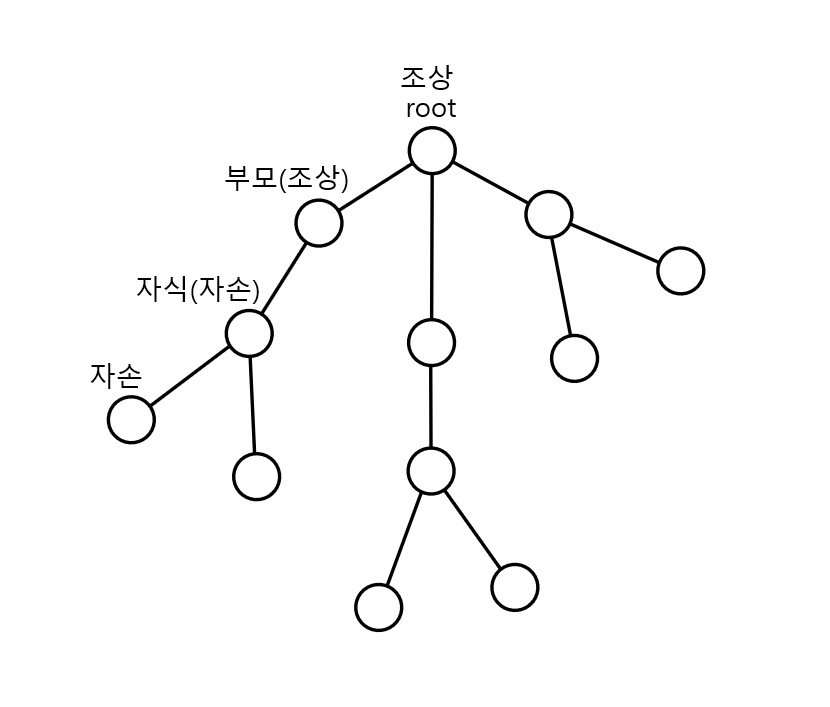 하지만 정보에서는 주로 정점 간의 관계를 부모-자식 관계로 설명하며, 부모가 존재하지 않는 루트 노드를 설정한다. 서로간에 간선이 있는 두 정점에서 루트에 더 가까운 정점이 부모가 된다. 그리고 부모의 부모의 부모의...부모인 경우 조상이라고 부르며, 자식의 자식의 자식의..자식인 경우 자손이라고 부른다. 이렇게 했을 때 얻을 수 있는 이득이 참 많다.